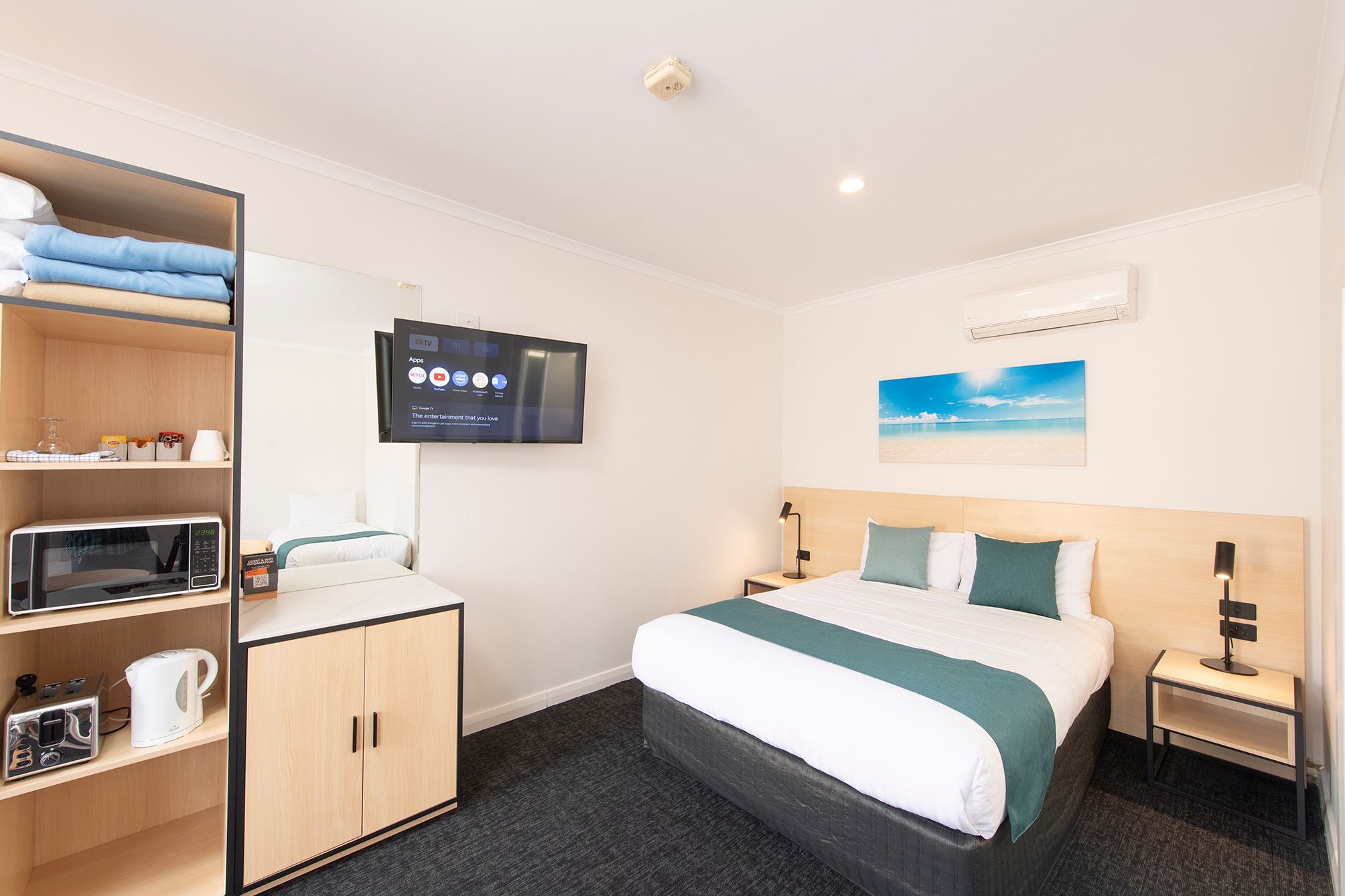Each room features modern split system air-conditioning, a digital flat-screen TV, ensuite bathroom, hairdryer, tea and coffee facilities, and a small refrigerator. Enjoy complimentary wireless internet and a fully non-smoking environment for a relaxing and comfortable stay.